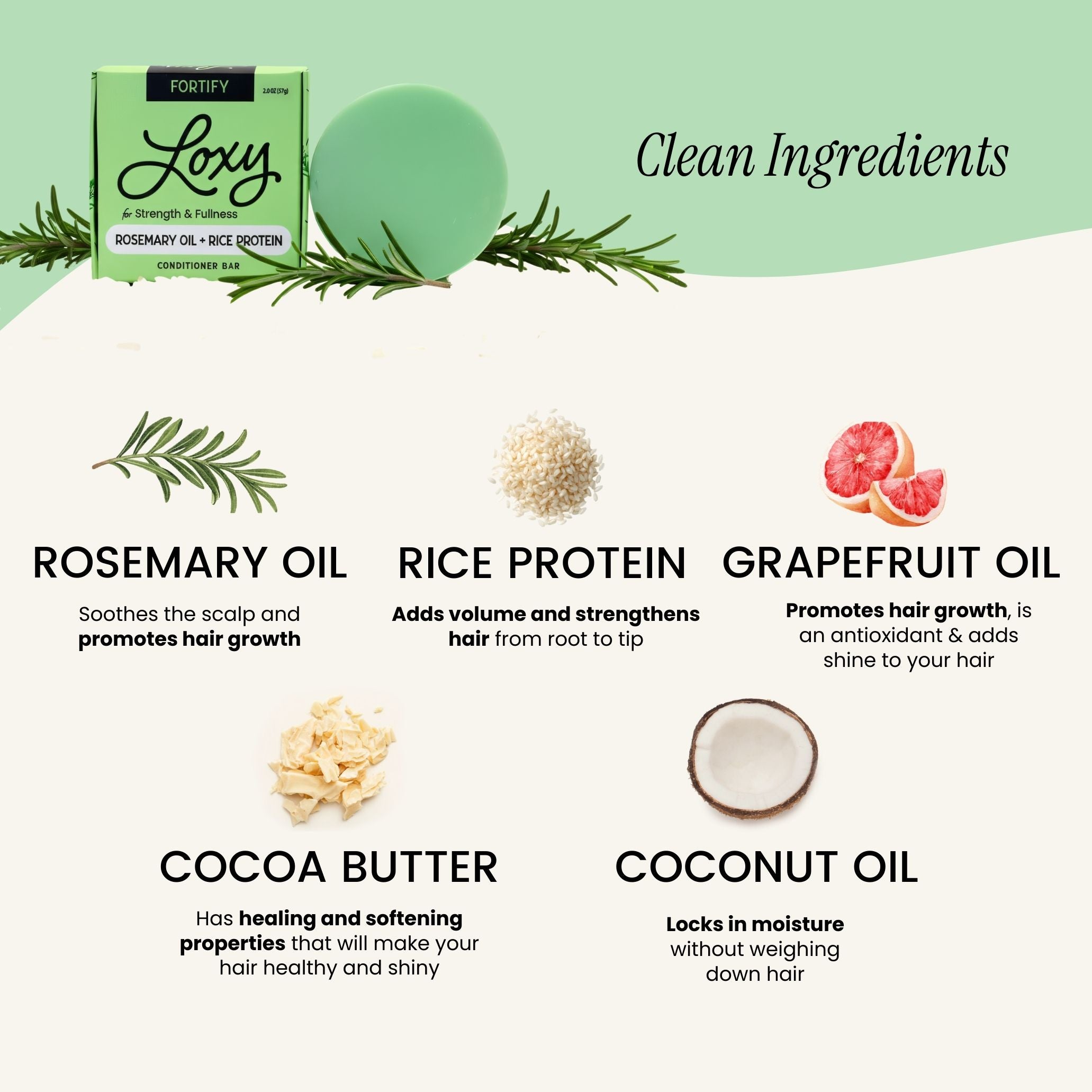 Nourish your hair for strength and body! Our Fortify Conditioner Bar is designed to add fullness and strength without weighing your hair down. Packed with the volumizing benefits of rice protein and the scalp-soothing properties of rosemary oil, this conditioner bar hydrates and fortifies each strand, leaving your hair soft, shiny, and full of body. Coconut oil delivers deep moisture while the rice protein gives your hair extra volume and strength. Perfect for normal to fine hair that needs a boost in thickness and strength.