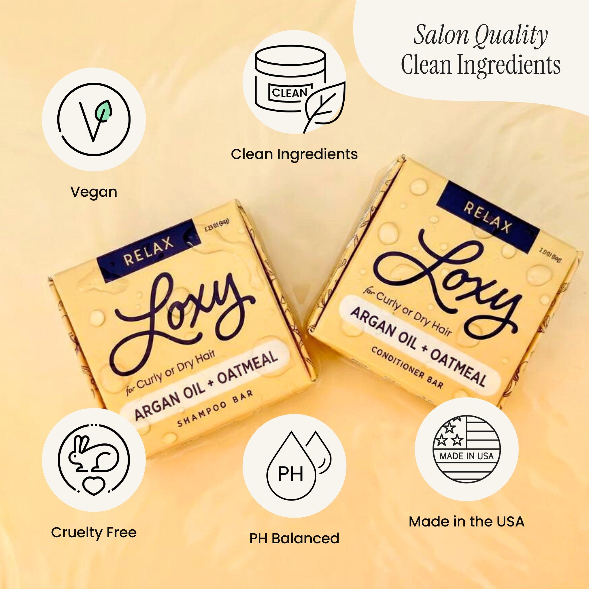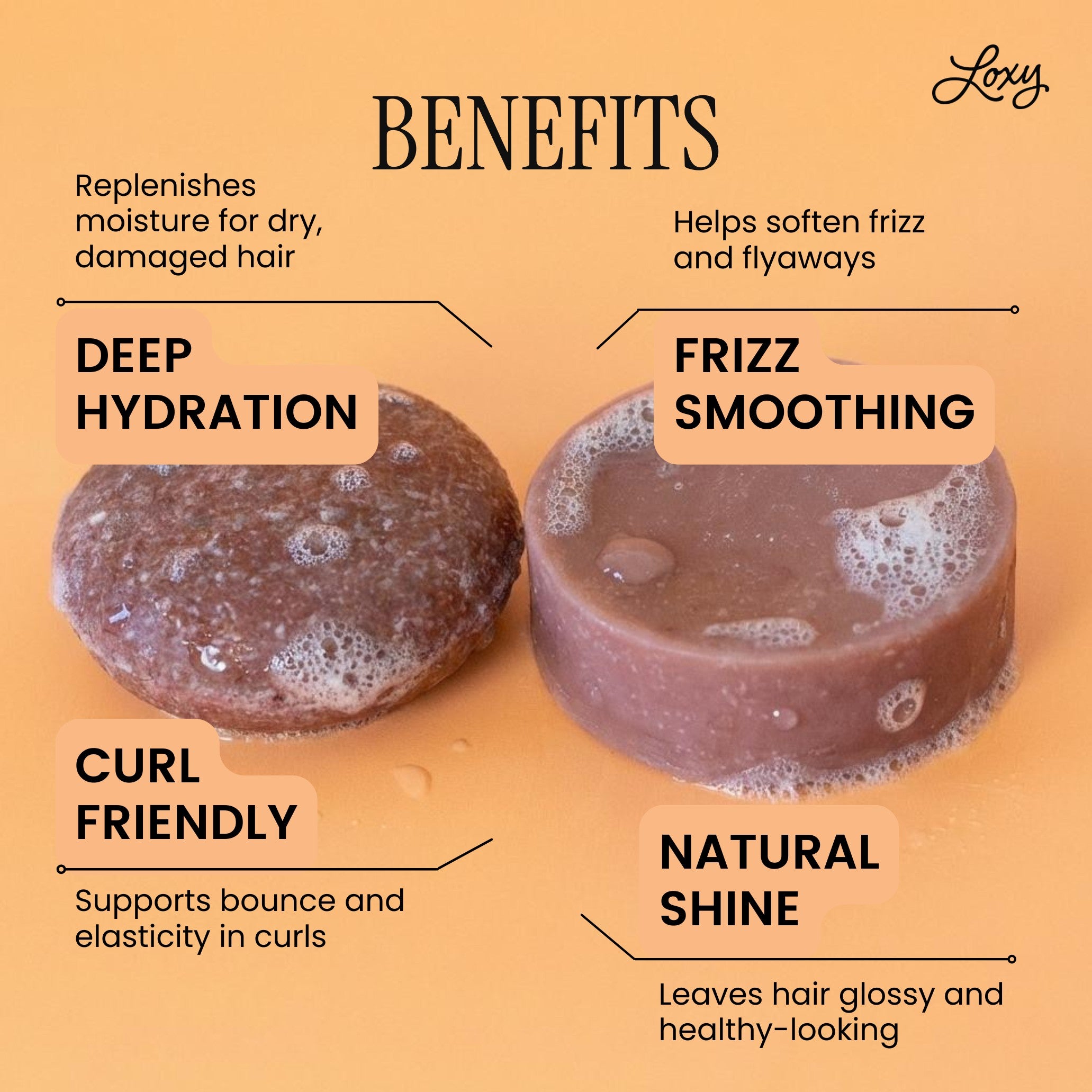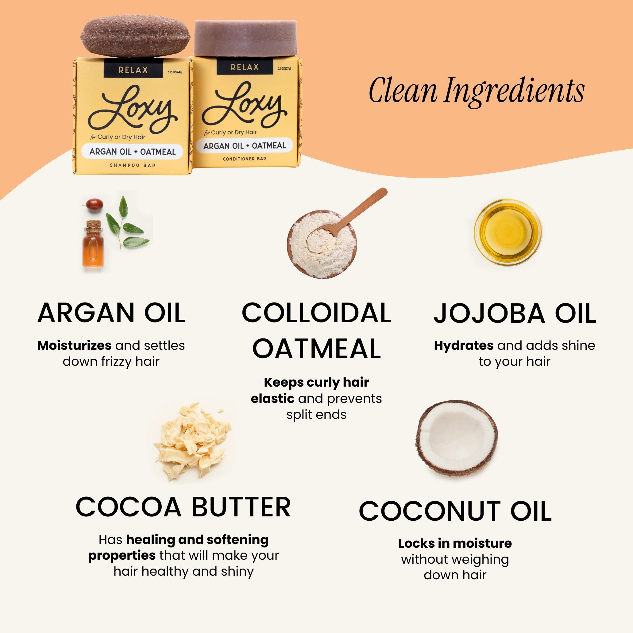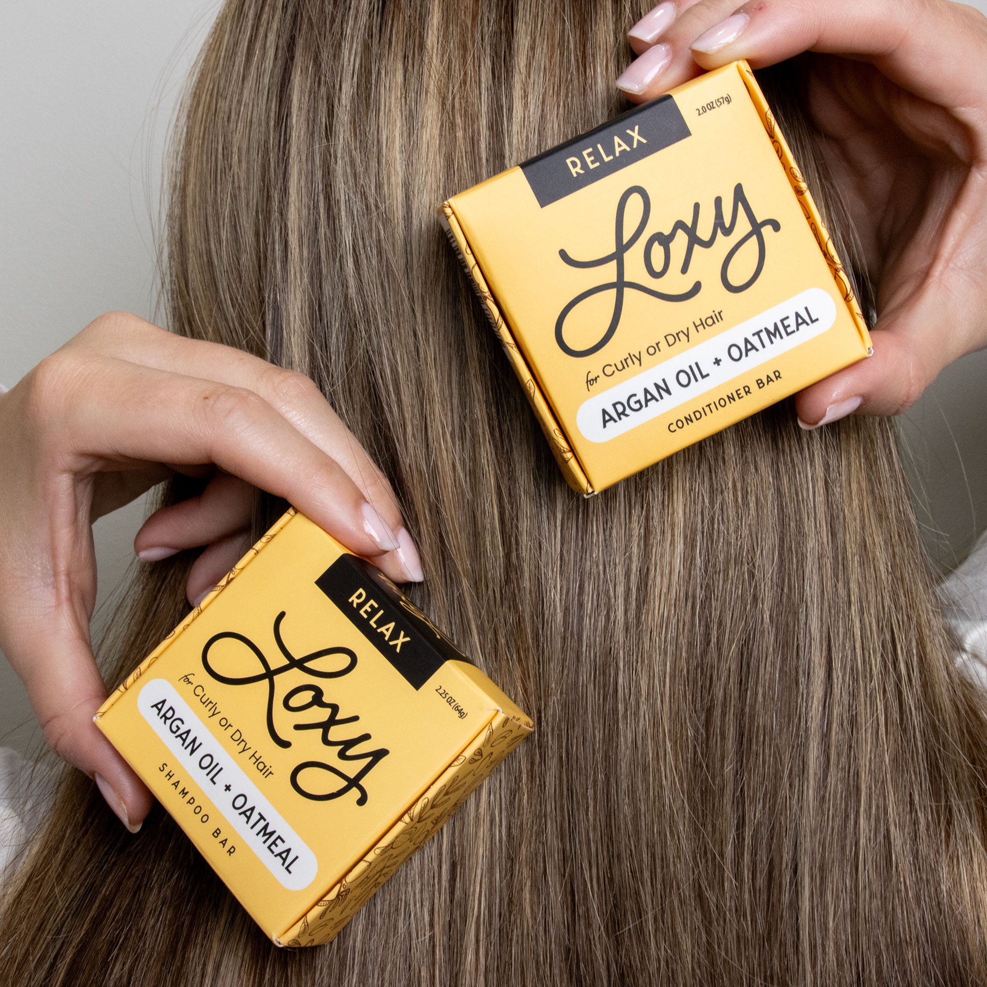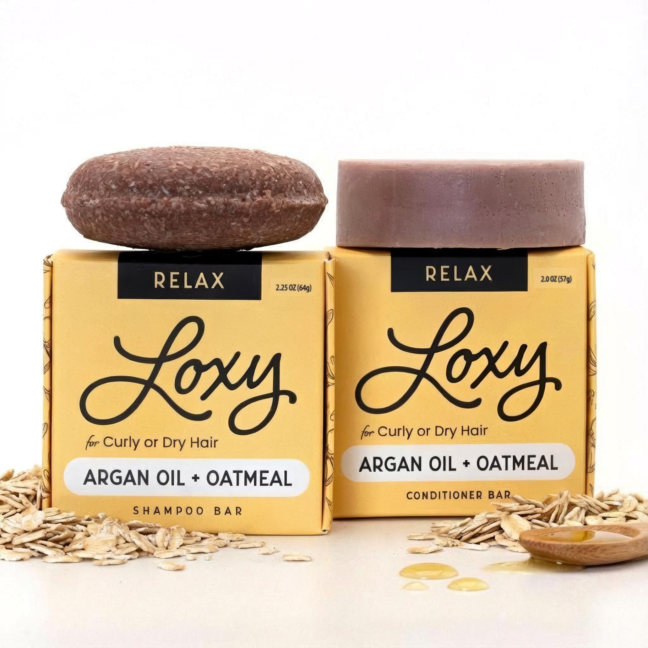 Our Loxy RELAX shampoo bar cleans and hydrates damaged hair. Perfect for dry, frizzy, or curly hair our moisturizing shampoo bar helps to bring back the bounce and shine. Hair repair conditioner bar with Jojoba + Argan oil. Our naturel RELAX solid conditioner bar smooths and adds moisture for dry, frizzy, curly or damaged/highlighted hair. Add some shine and hydration to those locks!